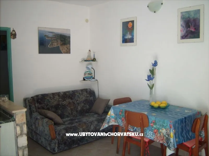 Appartamento Blue in casa,Casa Vjeka nella baia Mikulina Luka 2,5 km a ovest di Vela Luka, sull'isola. La spiaggia si trova a 30m dal mare.Gli appartamenti sono adatti per le famiglie e serena vacanza