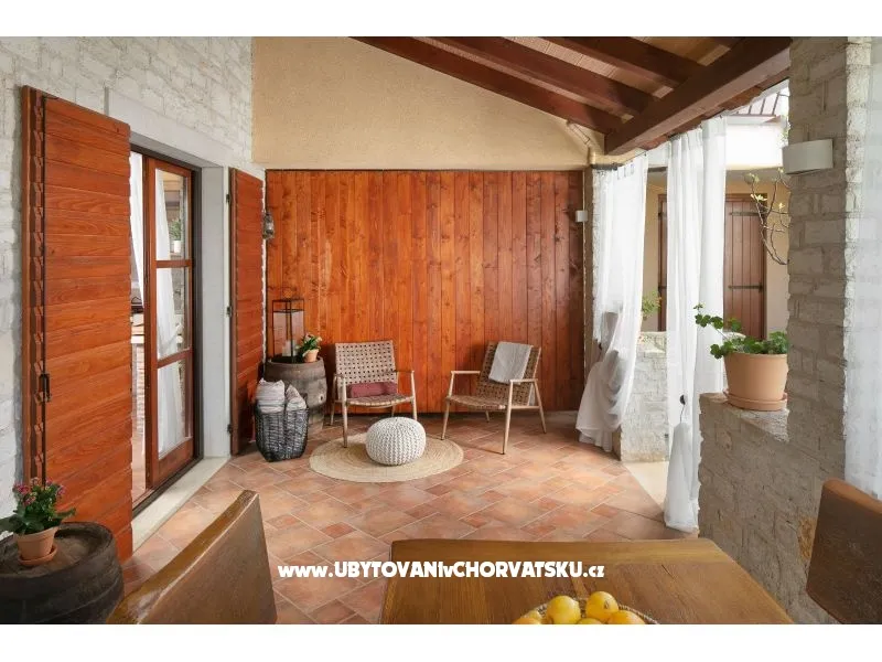 Questa casa in pietra, costruita in stile tradizionale istriano, si trova nella pittoresca cittadina di Novigrad, sulla riva nord-occidentale della penisola istriana. La sistemazione č composta da un'ampia cucina arredata in stile tradizionale con camino, grande tavolo, divano e TV satellitare. L'uscita dalla sala da pranzo conduce ad una terrazza coperta, dotata di un tavolo, dove si puň godere seduti all'ombra,...