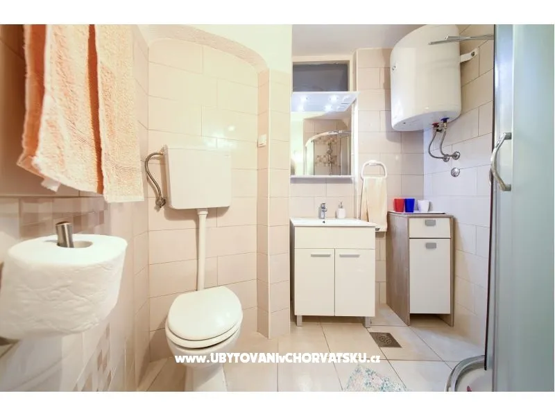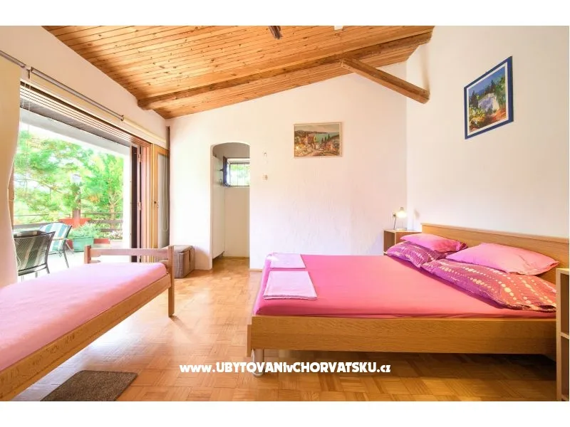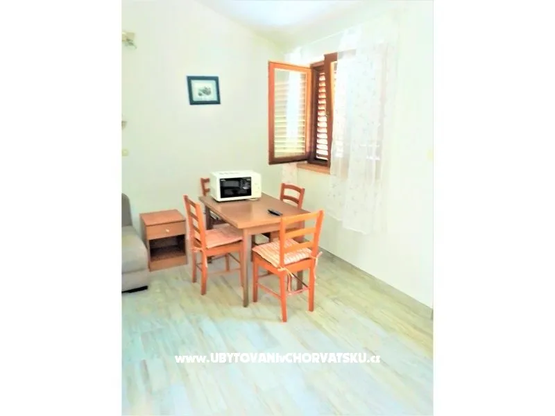 'Appartamento (30 m˛) si trova in una zona tranquilla di Baška, circondato da pini e vegetazione. Č composto da una camera da letto (letto matrimoniale), cucina attrezzata, soggiorno (divano letto), bagno (Vasca/WC), balcone e posto auto in cortile.