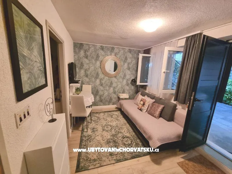 Offerta rara: appartamento con giardino privato! Nella localit? di Baska Voda, sul lato sud della casa bifamiliare, al piano terra, si trova un grazioso appartamento di 36 m2, capacit? 2 +1 persona, con un cortile di circa 80 m2, adattato per un soggiorno confortevole e rilassante . Oltre ad avere 2 bagni, l'appartamento č dotato di tutti i servizi necessari per una piacevole vacanza, tra cui aria condizionata, Hi-fi e TV via cavo, piano cottura a induzione, cappa aspirante, lavastoviglie, lavatrice, cassaforte. Per un maggiore comfort, utilizziamo solo lenzuola di raso nell'attrezzatura dell'appartamento ... Il piů grande vantaggio dell'appartamento č il cortile con una dimensione di 80 m2, che ha un ingresso separato e appartiene solo agli utenti dell'appartamento e offre assoluta sicurezza per i bambini. Il tradizionale cortile dalmata č piantumato con piante mediterranee e l'area pavimentata č attrezzata con lettini, mobili da giardino e barbecue. Il soggiorno con zona pranzo e la camera da letto sono direttamente collegati al cortile. Se stai cercando una casa confortevole, una vacanza tranquilla all'ombra delle vigne, coltivate qui da generazioni, siamo sicuri che non commetterai l'errore di scegliere questo appartamento per le tue vacanze in Croazia.