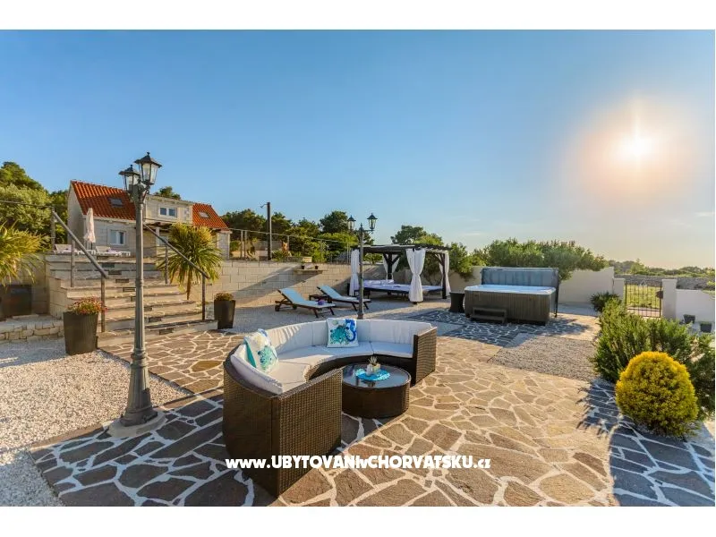 La villa si trova a Supetar, sull'isola di Brac, situato in una zona remota con accesso privato al mare. Di fronte alla casa è un prato e attrezzature per bambini e una piscina e barbecue. Vista dalla casa è il mare e Spalato. Il centro di Supetar e ristoranti è raggiungibile lungo la passeggiata mare. In 500 metri si trova un supermercato Lidl e Konzum.