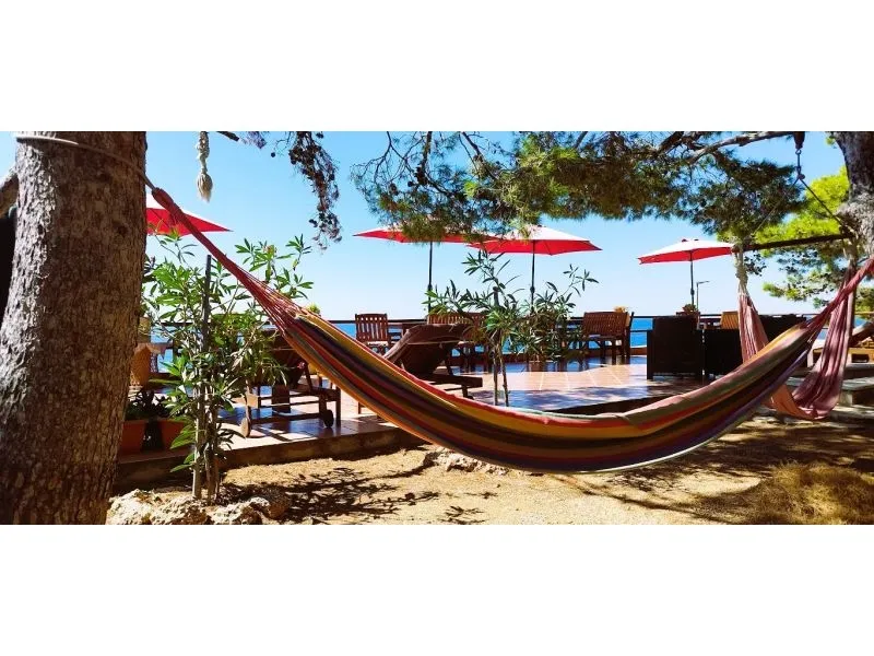 1 letto matrimoniale, bagno, cca 15 m2 + terrazza (pianterreno, est) sat TV, frigo in camera negli altri periodi, possibilit? di utilizzare cucina comune, discesa diretta in giardino e mare!
