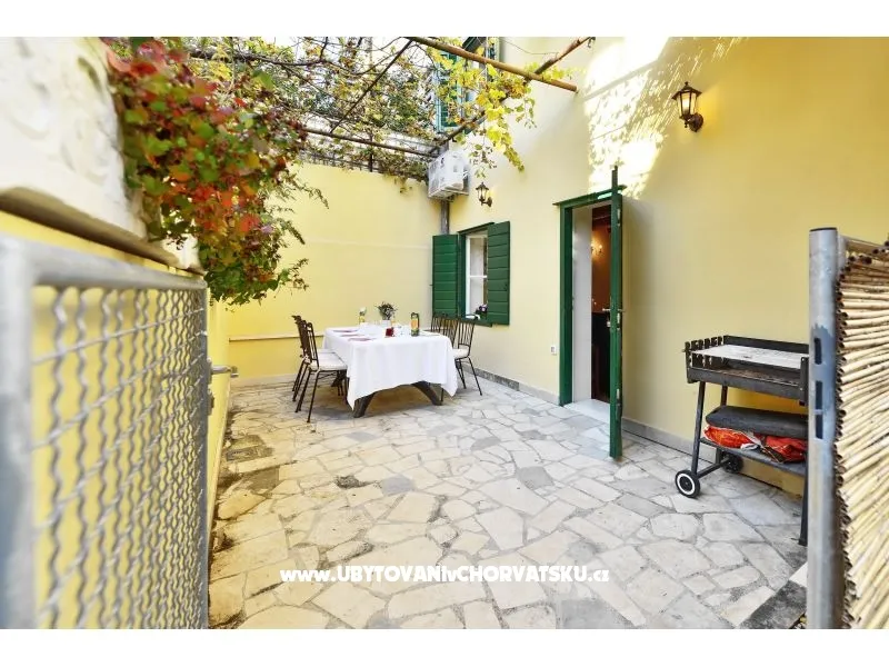 Casa in Omis, a soli trenta metri dalla spiaggia Bandiera Blu, in una zona tranquilla, lontano dal caos e le strade. L'appartamento è arredato in stile moderno - stile rustico ed è completamente attrezzata. Si compone di un piano terra con cucina, sala da pranzo e soggiorno e un ampio bagno con lavatrice, e al primo piano ci sono tre camere matrimoniali ed un secondo bagno. La casa ha un giardino con barbecue e un tavolo per dieci persone. La capacità è di 6 +3 persone, perché il divano con un materasso al piano terra si estende per 2 +1 persone. La cucina è attrezzata con elettrodomestici e utensili tra cui una lavastoviglie, piano terra e primo piano sono dotate di aria condizionata, cassetta di sicurezza, internet, TV SAT. I materassi sono i migliori - ortopedico, biancheria da letto è un unico - rilegato a mano. Parcheggio assicurato venti metri dalla casa. Tutti (tassa di soggiorno, aria condizionata, parcheggio ..) è incluso nel prezzo.