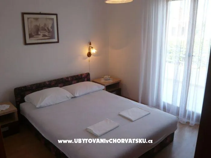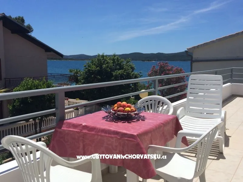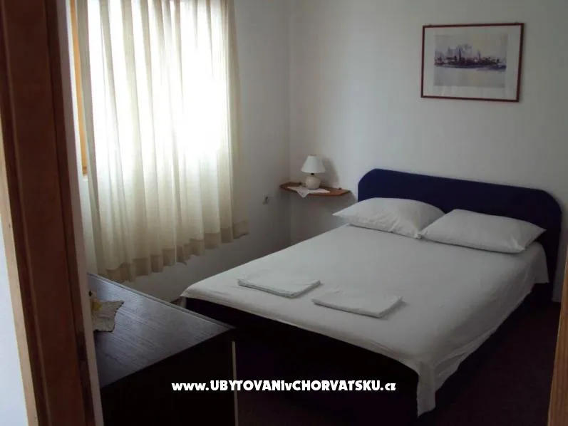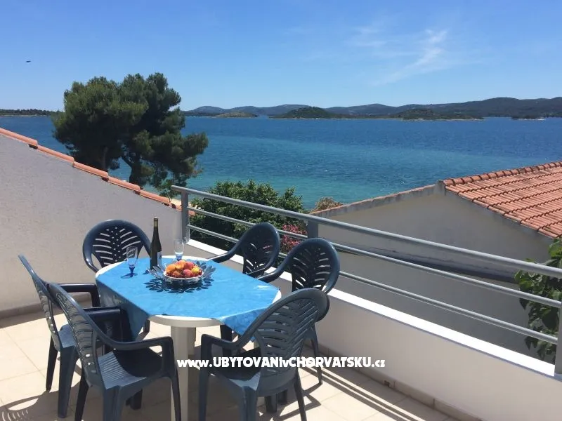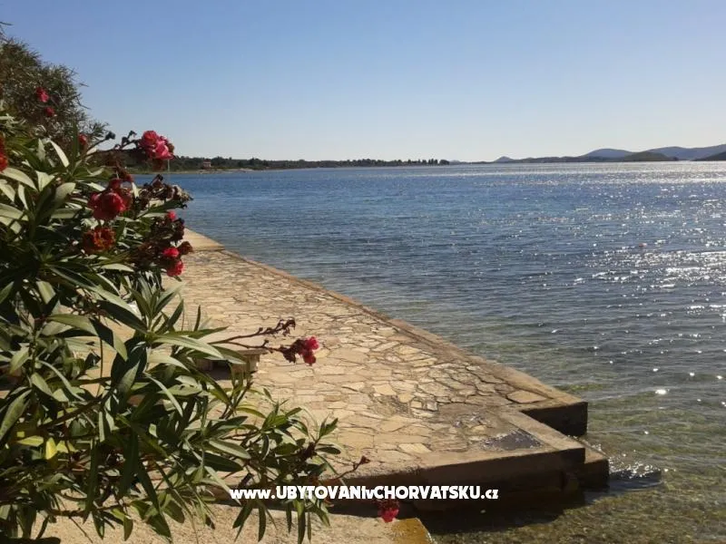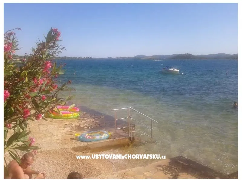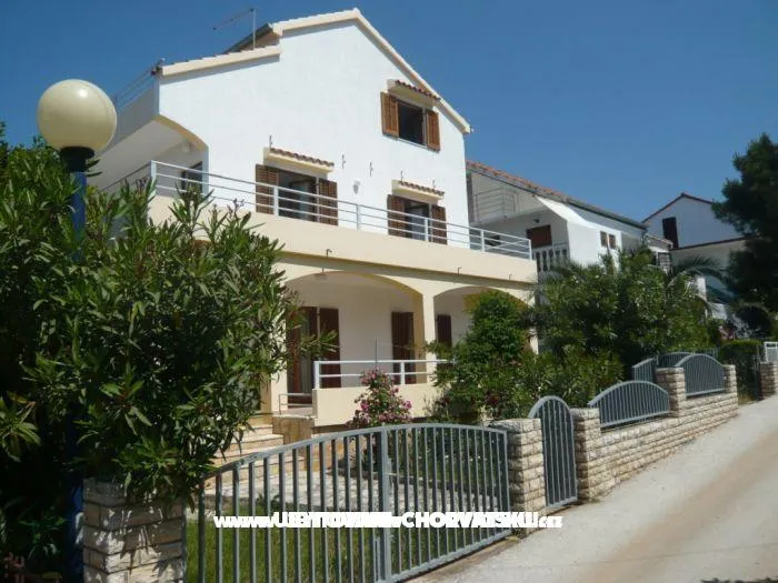 Alloggi privati in 3 appartamenti in affitto. 2 appartamenti 40m2 al primo piano, ognuno per 4 persone e 1 appartamento 60m2 al secondo piano per 6 persone. Ogni appartamento dispone di balcone o terrazza, TV, cucina, bagno ... Il parcheggio nel cortile, grill. Mare e la spiaggia soltanto 20m dalla casa! Wi-Fi internet.
