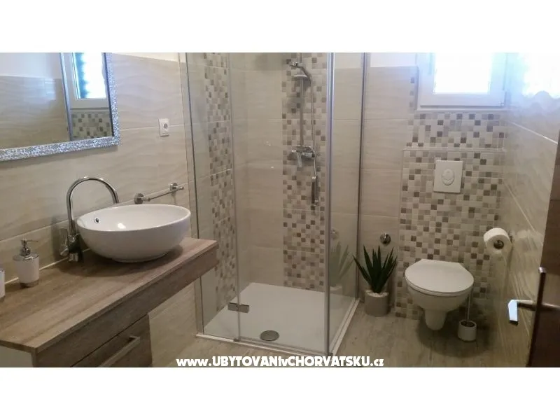 Tutti gli appartamenti sono dotati di cucina, bagno, terrazzo, posto auto all'ombra. Siamo situati a 80 metri dalla bellissima spiaggia di ghiaia. Tutti gli appartamenti si trovano sul lato sud. La casa ha un ampio giardino erboso all'ombra, adatto ai bambini. Offriamo molte attività sportive e ricreative. I proprietari sono cordiali e pronti ad aiutare. C'è un posto barca.