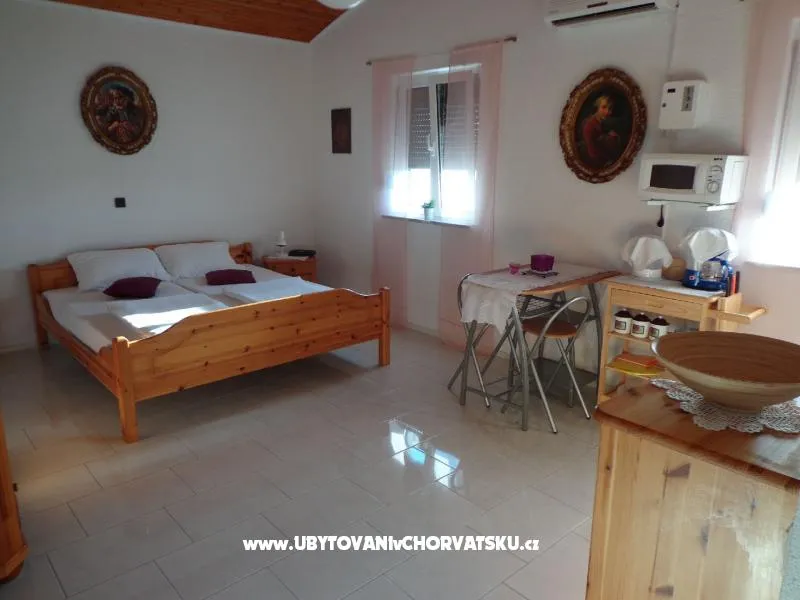 Appartamento con 1 camera da letto, Croazia Ideale per 2 persone. 150 m dalla spiaggia sabbiosa, Aria condizionata (a pagamento), ampio balcone coperto App 1 con 16 m˛, App 2 con 11 m˛. Doccia/WC, asciugacapelli, cassaforte, per prenotazioni inferiori a 7