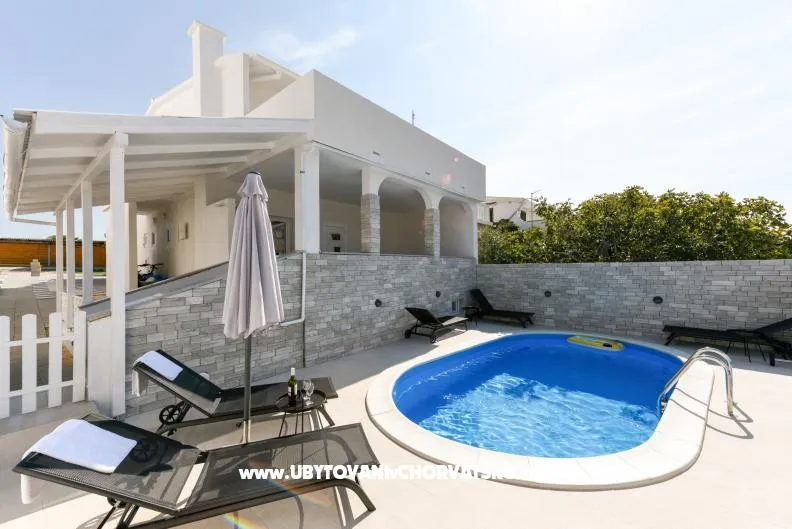 Apartament dla 6+2 osób w Povljana / Pag z podgrzewanym basenem - świetny dla rodzin z dziećmi. Mieszkanie ma 80 m2 z 3 sypialniami dla 6 (+2) osób, salonem z sofą (sofa zmienia się w łóżko dla dwóch osób, łącznie 8 miejsc). Mieszkanie posiada 2 łazienki, 2 tarasy, kuchnię. Apartament posiada WI-FI, klimatyzację, bezpłatny parking, grill, jacuzzi oraz dostęp do prywatnego basenu. Mieszkanie znajduje się 200m od plaży. Povljana to piękne spokojne miejsce dla rodzin z dziećmi. Jest piaszczysta plaża, kamienista plaża i krystalicznie czyste morze. Gwarantujemy, że spędzisz niesamowite wakacje.
