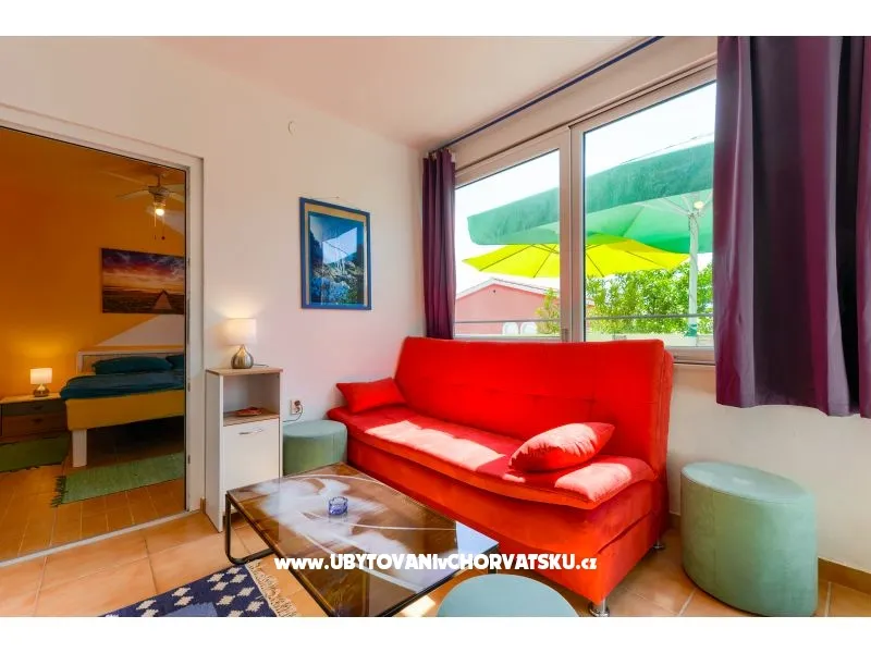 App.2(2+2) per 4 persone, situato vicino al mare e alla spiaggia di sabbia e ghiaia (ca. 120-130m), in una villa bifamiliare (nel condominio (CARPE DIEM) in posizione tranquilla e soleggiata! Il parcheggio č di fronte all'oggetto.