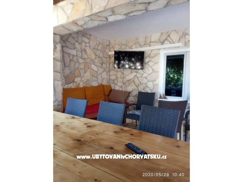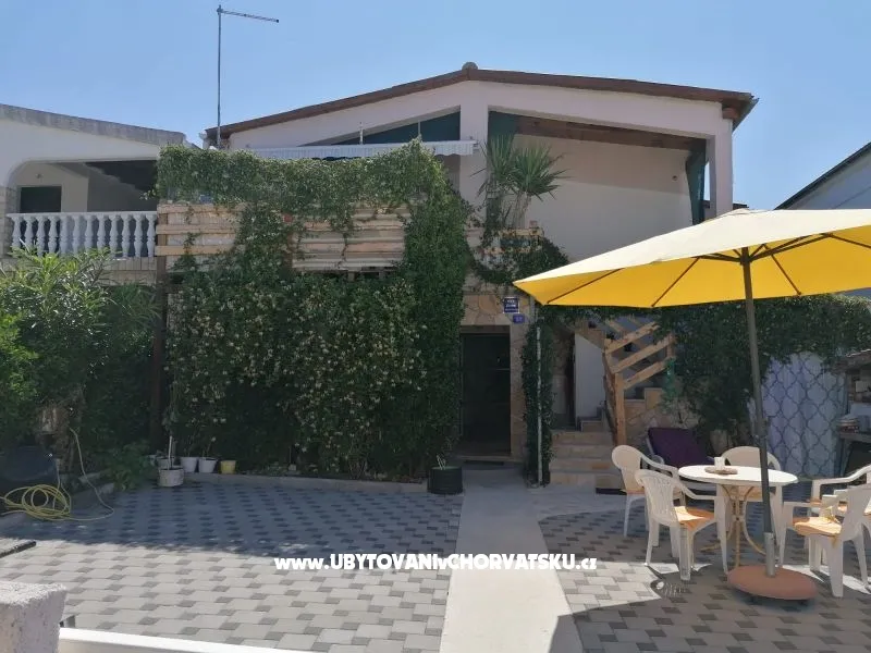 L'appartamento si trova sul lato sud, la parte piů bella dell'isola, a 150 m dal mare e dalla spiaggia, che ha parti di mare poco profondo e profondo. L'appartamento dispone di parcheggio privato, dimensione 85m2, due bagni, due camere con letto matrimoniale - disponibile asilo nido e seggiolone, una piccola stanza in piů con letto a castello, soggiorno con divano letto, ampio terrazzo all'aperto con TV, terrazzo...