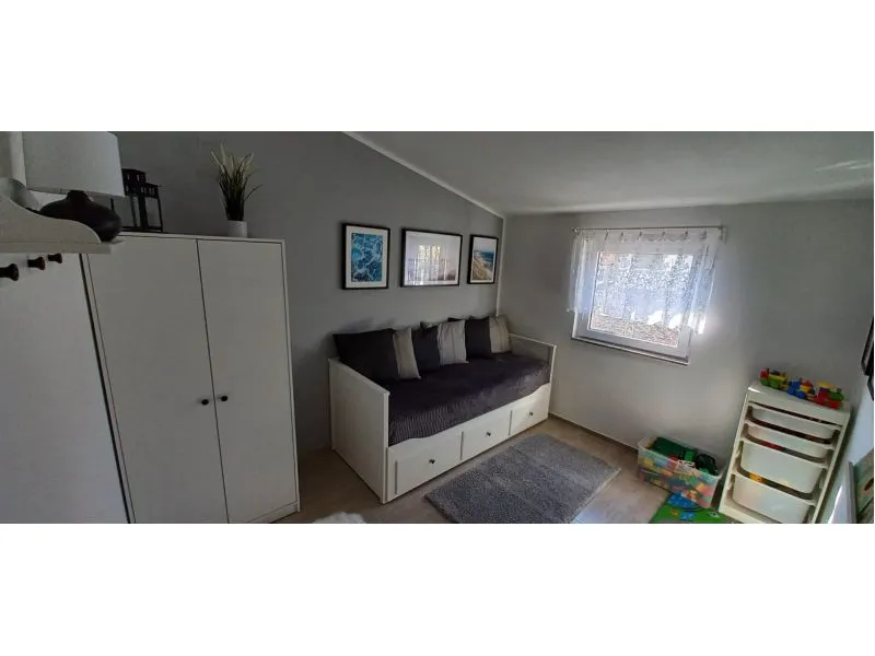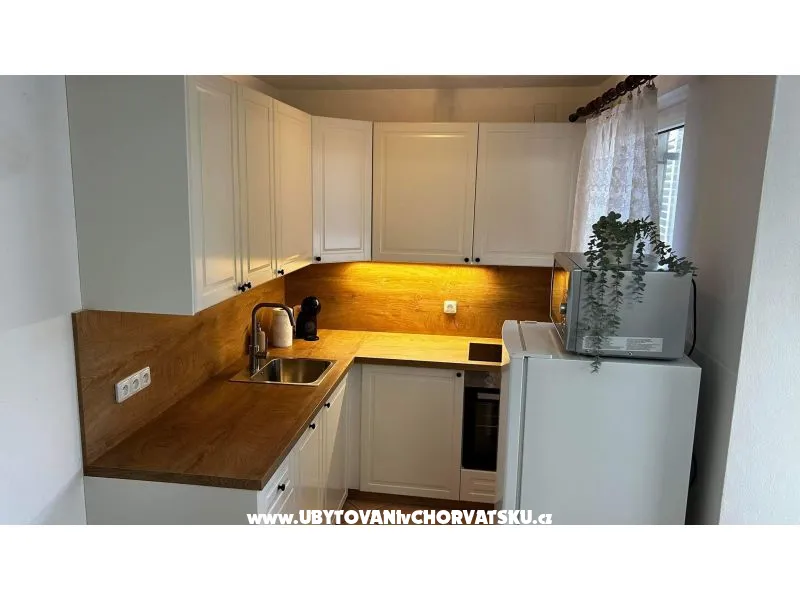 Offriamo alloggio in due appartamenti separati, ciascuno con una superficie di 78 mq, uno al piano terra e uno al primo piano. Ogni appartamento dispone di 3 camere da letto, una cucina attrezzata e un bagno. Abbiamo cercato di creare per te un alloggio in cui ti sentirai a casa. Venite a trovarci sull'isola di Vir e giudicate voi stessi. Non vediamo l'ora del tuo soggiorno. Katka e Jakub.
